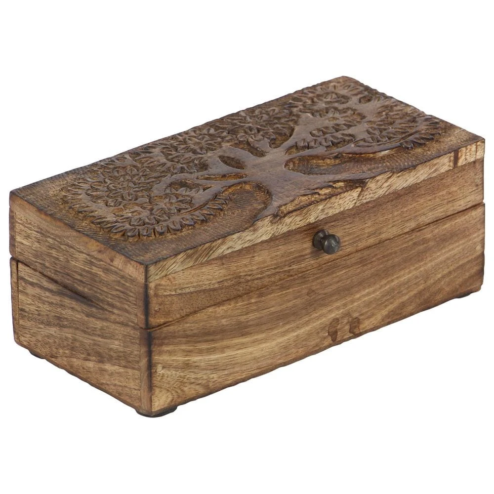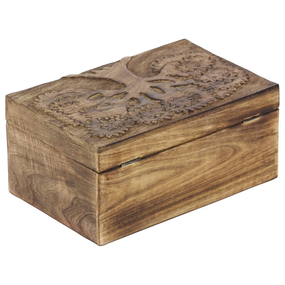 - This 3-piece real wood jewelry box set feature tree carvings on the rectangle covers