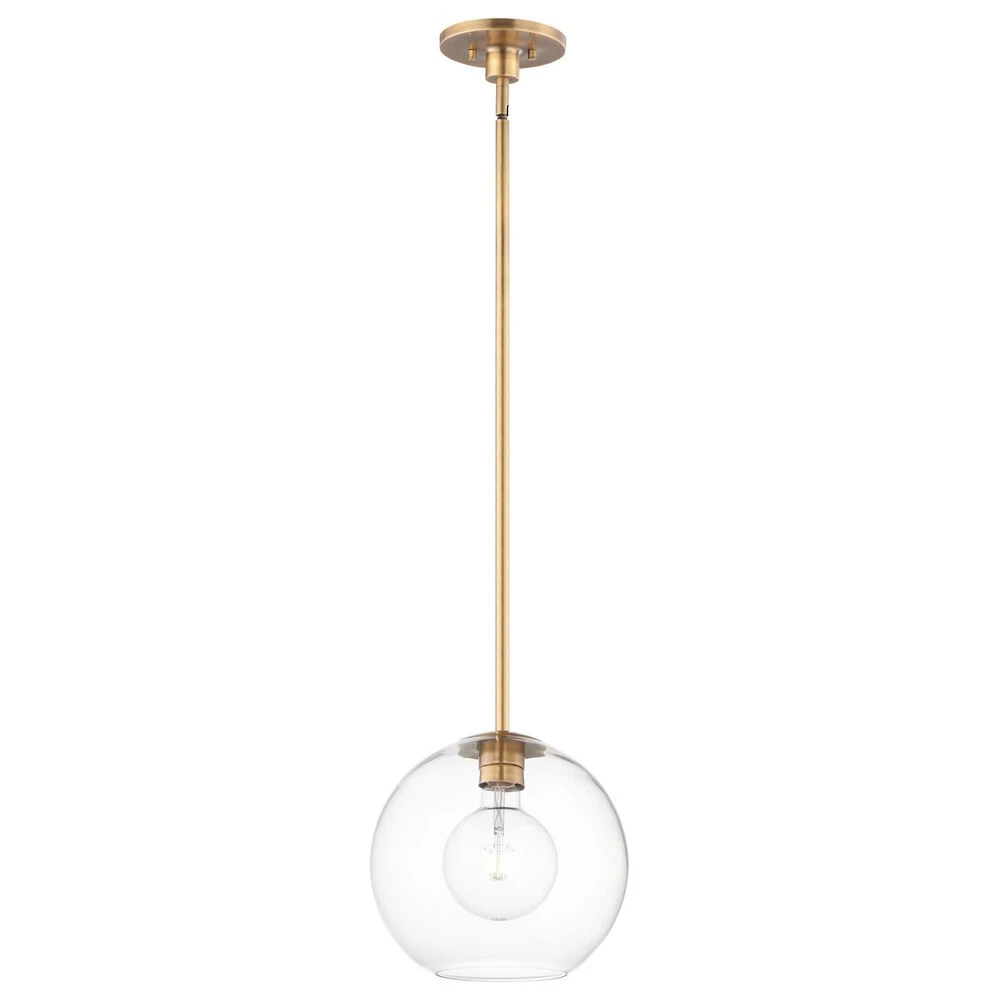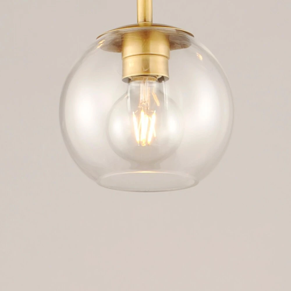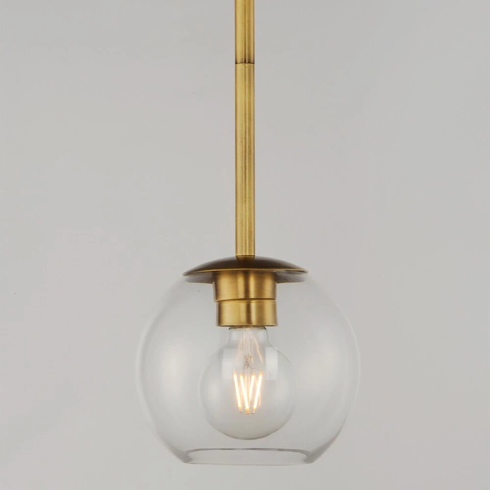 Vessels of heavy weight Clear glass are supported on frames of solid brass finished in a hand rubbed Natural Aged Brass finish. A versatile collection of up and down configurations which can be directly attached to the canopy or extended down by the rods supplied.