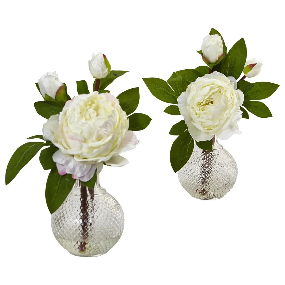 - Set of 2 with a mixture of budding and blossoming peonies