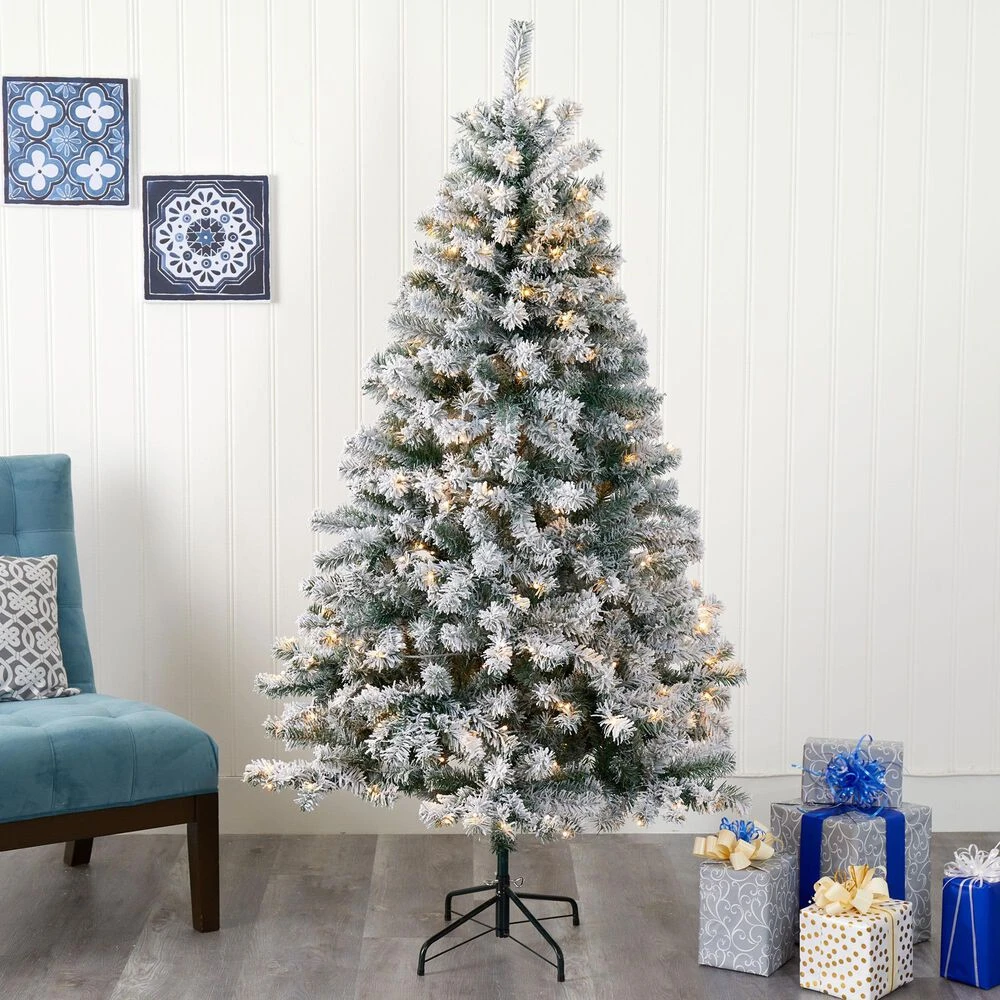 Create the ultimate winter wonderland scene in your home or office with the help of this Flocked Rock Springs Spruce Artificial Christmas Tree! Completely maintenance-free, this winter-inspired fake Christmas tree boasts an array of soft looking foliage, all beautifully flocked in a snow-like effect throughout its 586 bendable branches, perfect for accenting with your favorite holiday accents. Arriving pre-strung with 250 white LED lights to eliminate tangles and stabilized on an accompanying stand, this handsome 6 tall artificial Christmas tree will not only make holiday decorating a breeze but ensure your home is always looking picture-perfect throughout the holiday season. About Nearly Natural Inc. – For over 75 years, Nearly Natural Inc. has been providing conscientious consumers with beautiful alternatives to natural decorations. Employing and advised by naturalists who understand the live plant world, Nearly Natural is able to recreate the most realistic-looking decorative items for homes, offices, and businesses. Driven by a true commitment to customer service, attention to detail, and natural philosophy, Nearly Natural strives to bring customers the most beautiful, unique, and striking faux plants and floral on the market.