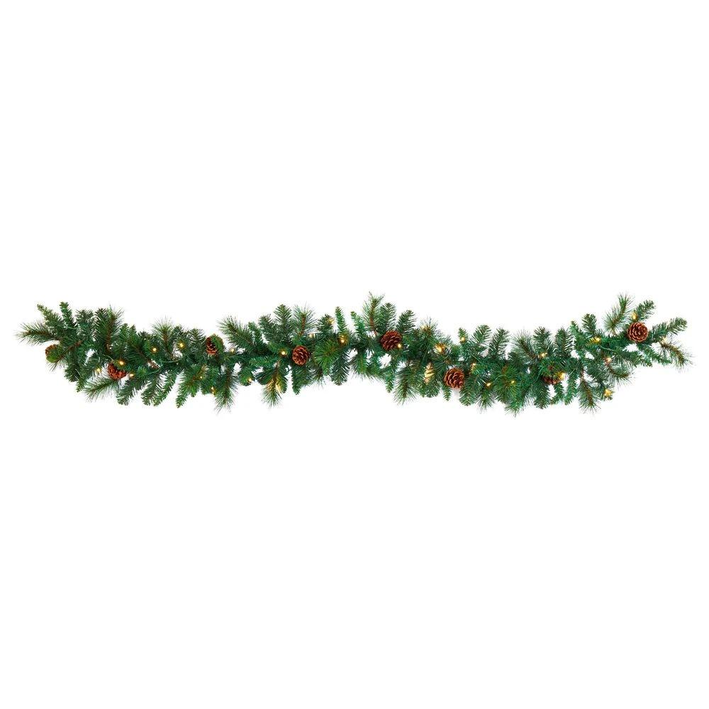 Complete your holiday decor scheme with this artificial winter garland, intricately designed from realistic looking pine foliage in a palette of seasonal evergreens and accented throughout with faux pinecones that look incredibly lifelike – all to help evoke the Christmas spirit. Arriving pre-strung with 35 White LED lights (battery operated) to eliminate tangles, it will effortlessly illuminate any space it inhabits. Great for showcasing over a mantle, bare counter, or stair banister, this handsome 6 long artificial garland will undoubtedly complete a traditional holiday setting for years to come. Silk plants are manufactured using synthetic materials, such as polyester material or plastic, and are well designed and constructed to be life-like in appearance. This item will need to be re-shaped when removed from the secure box to allow it to reach its fullest size. Your artificial plant will look beautiful for years to come; simply wipe clean with a soft dry cloth when needed.About Nearly Natural Inc. – For over 75 years, Nearly Natural Inc. has been providing conscientious consumers with beautiful alternatives to natural decorations. Employing and advised by naturalists who understand the live plant world, Nearly Natural is able to recreate the most realistic-looking decorative items for homes, offices, and businesses. Driven by a true commitment to customer service, attention to detail, and natural philosophy, Nearly Natural strives to bring customers the most beautiful, unique, and striking faux plants and floral on the market.