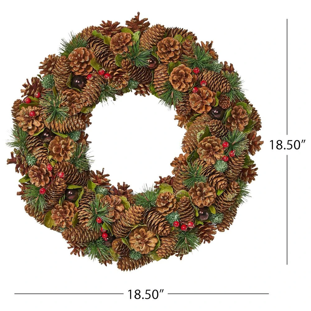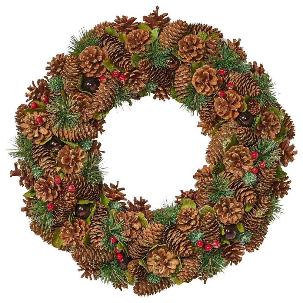 Ready your home with holiday cheer by using a simple yet stunning accessory. Our decorative wreath is an ideal addition to any space in need of a splash of Christmas merriment. Featuring a woodland look comprised of natural pine cones and shimmering pine needle accents, our artificial wreath accessory will bring any home to life. This is delightfully lightweight, giving you a full look without the unnecessary bulkiness. With effortless installation, your home can easily spread the joyous atmosphere of Christmas.