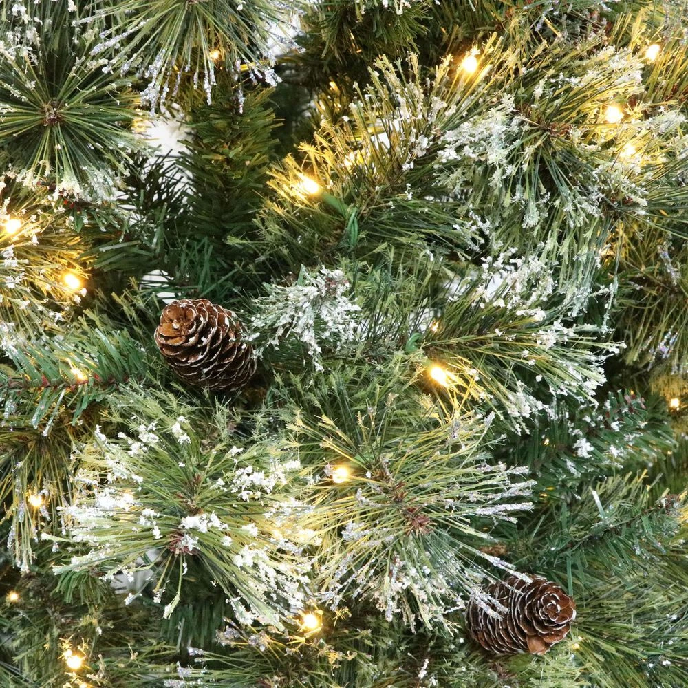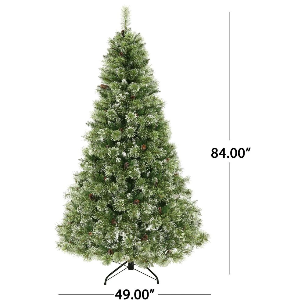 - CASHMERE MIXED NEEDLES: From its impressive green color and pine cones, our tree perfectly captures the charm of a snow-dusted Cashmere Christmas tree. Known for its frost-tipped look, this tree features split-end needles to create full, hearty foliage finished with dazzling glitter for your ornaments to rest on. Please note that this accessory is intended for indoor use only.