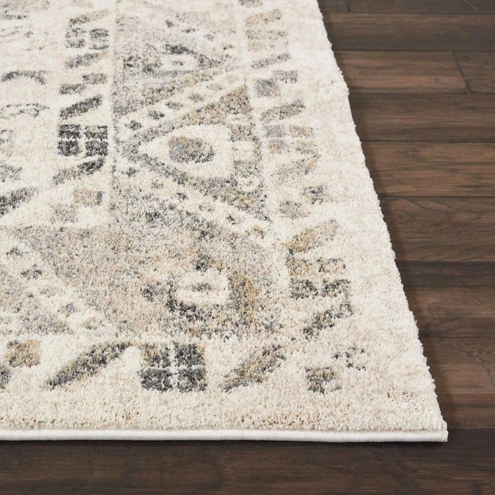 This Fusion collection rug imbues any room with a distinguished, regal tone, with its wonderfully distressed Persian rug design. The ornate border and center medallion add contrasting greys and neutral tones to the plush, beige field, creating the look of an exotic vintage piece.