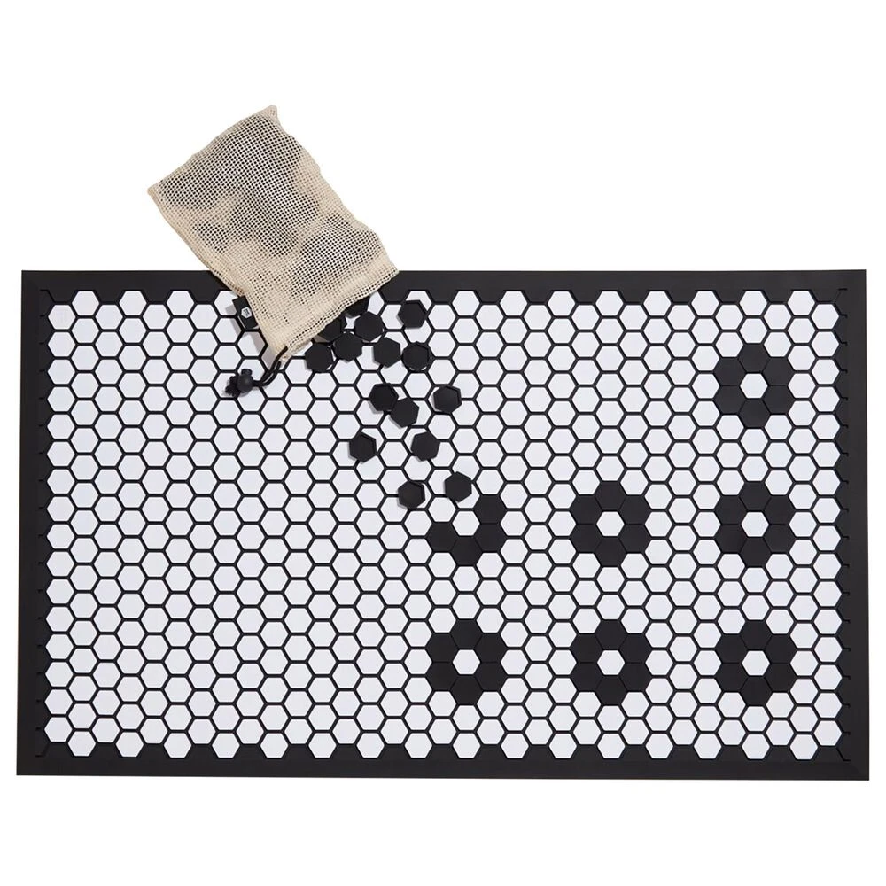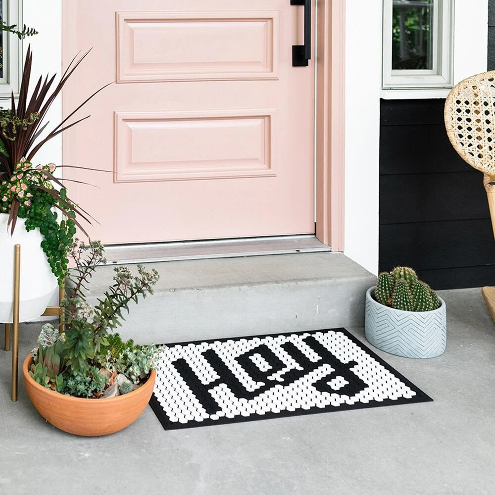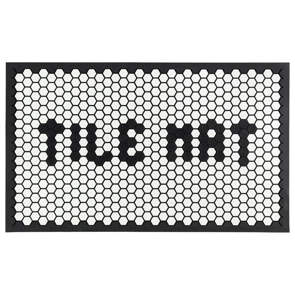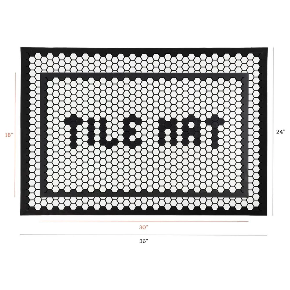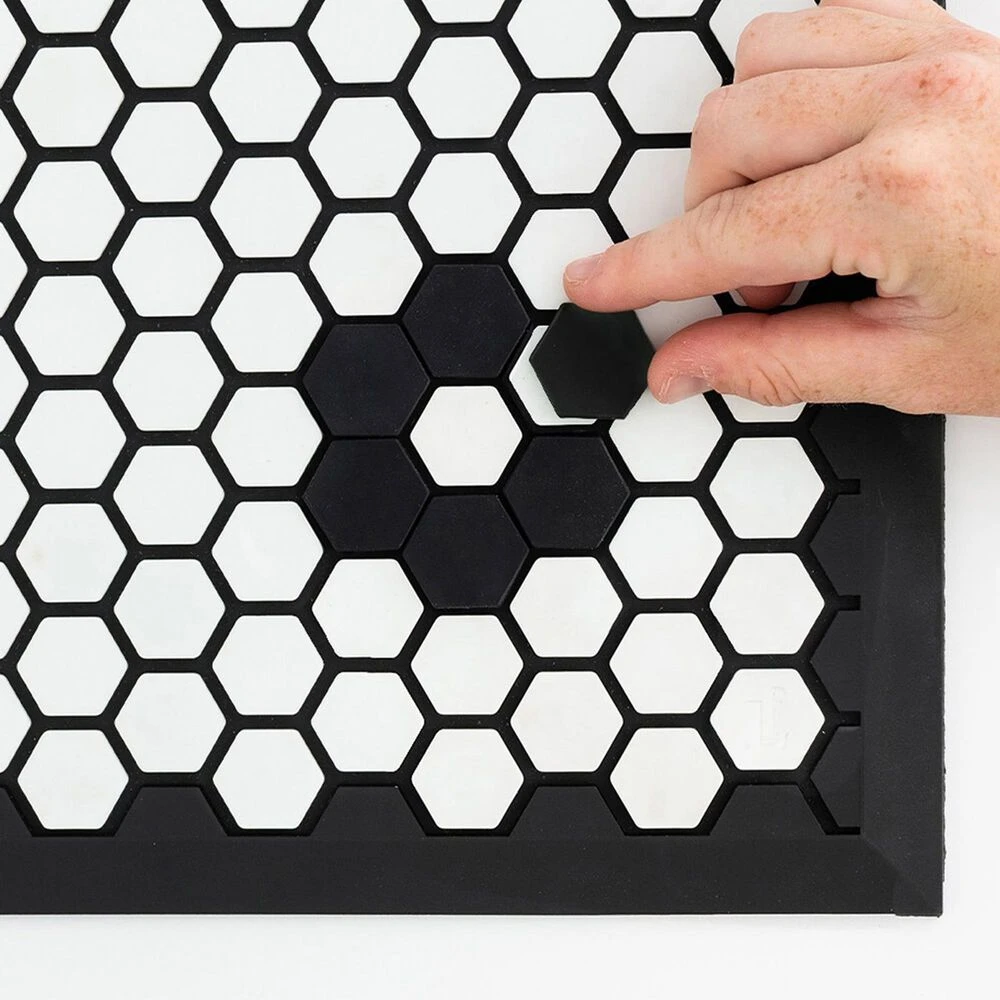 Its timeless, vintage-inspired hexagon tile design and removable caps can be used to create endless patterns, designs, and words. Includes white door mat and black colored tiles. Additional colored tiles sold separately.