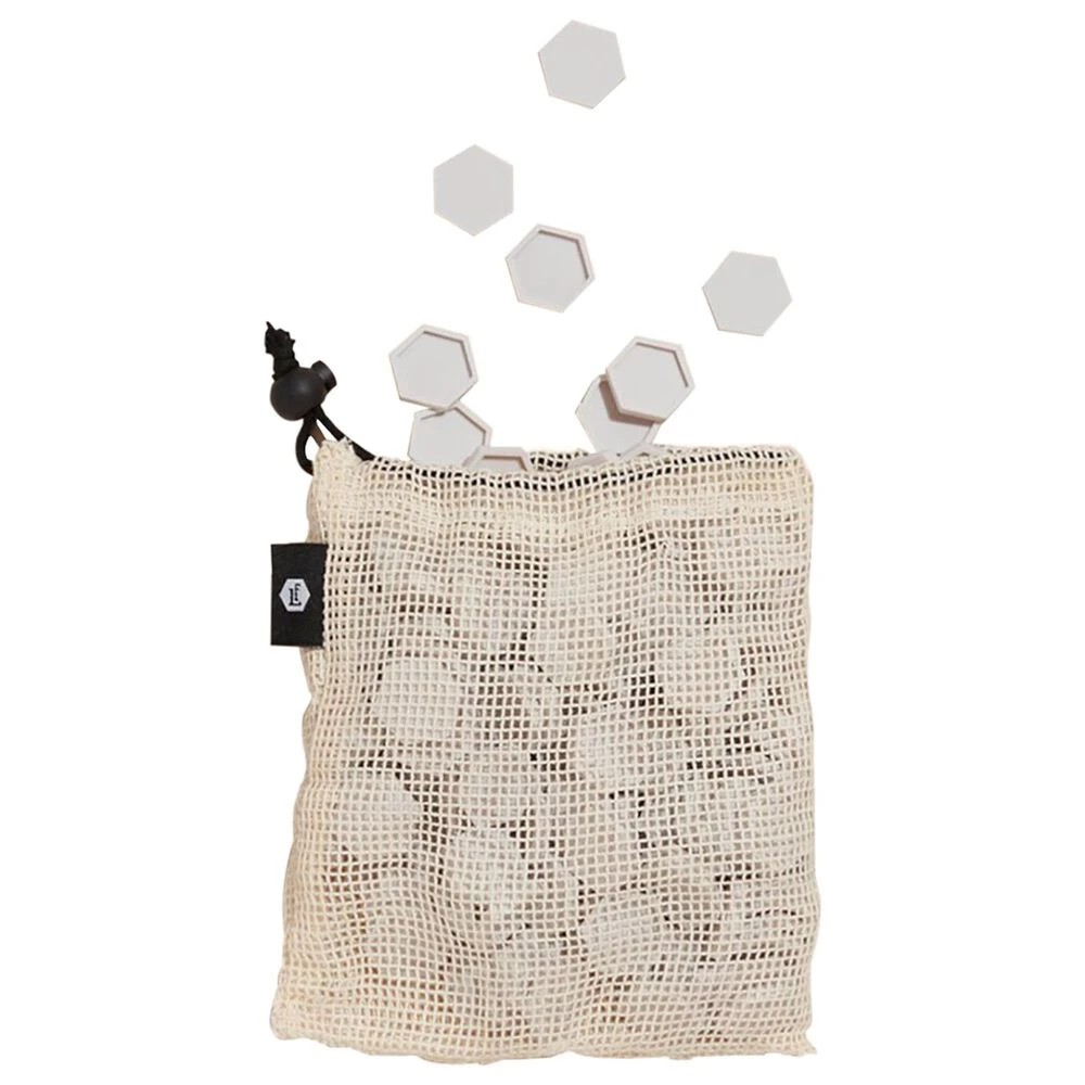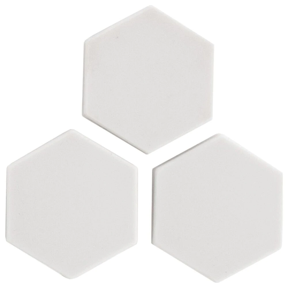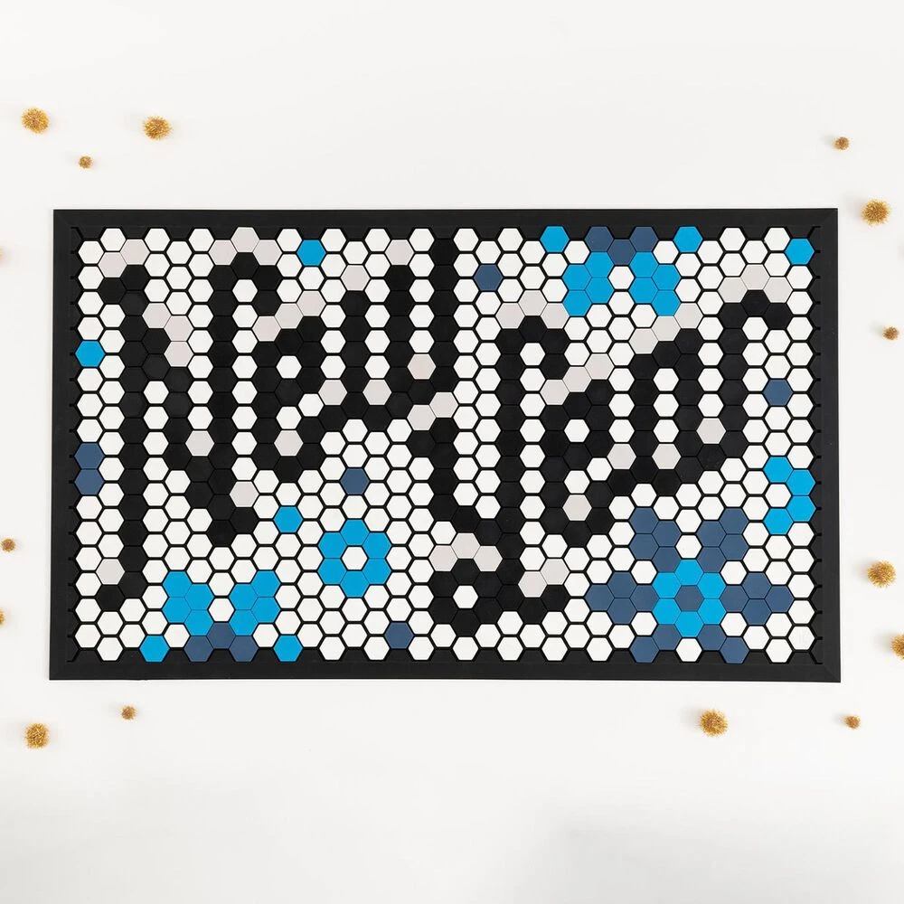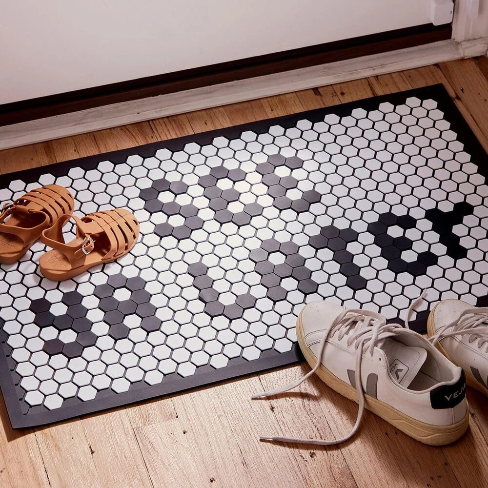 Each set includes 75 silicone hexagon tiles that are interchangeable with any Letterfolk Tile Mat and stored in a dishwasher-safe mesh cotton drawstring bag. Letterfolk Tile Door Mat not included.