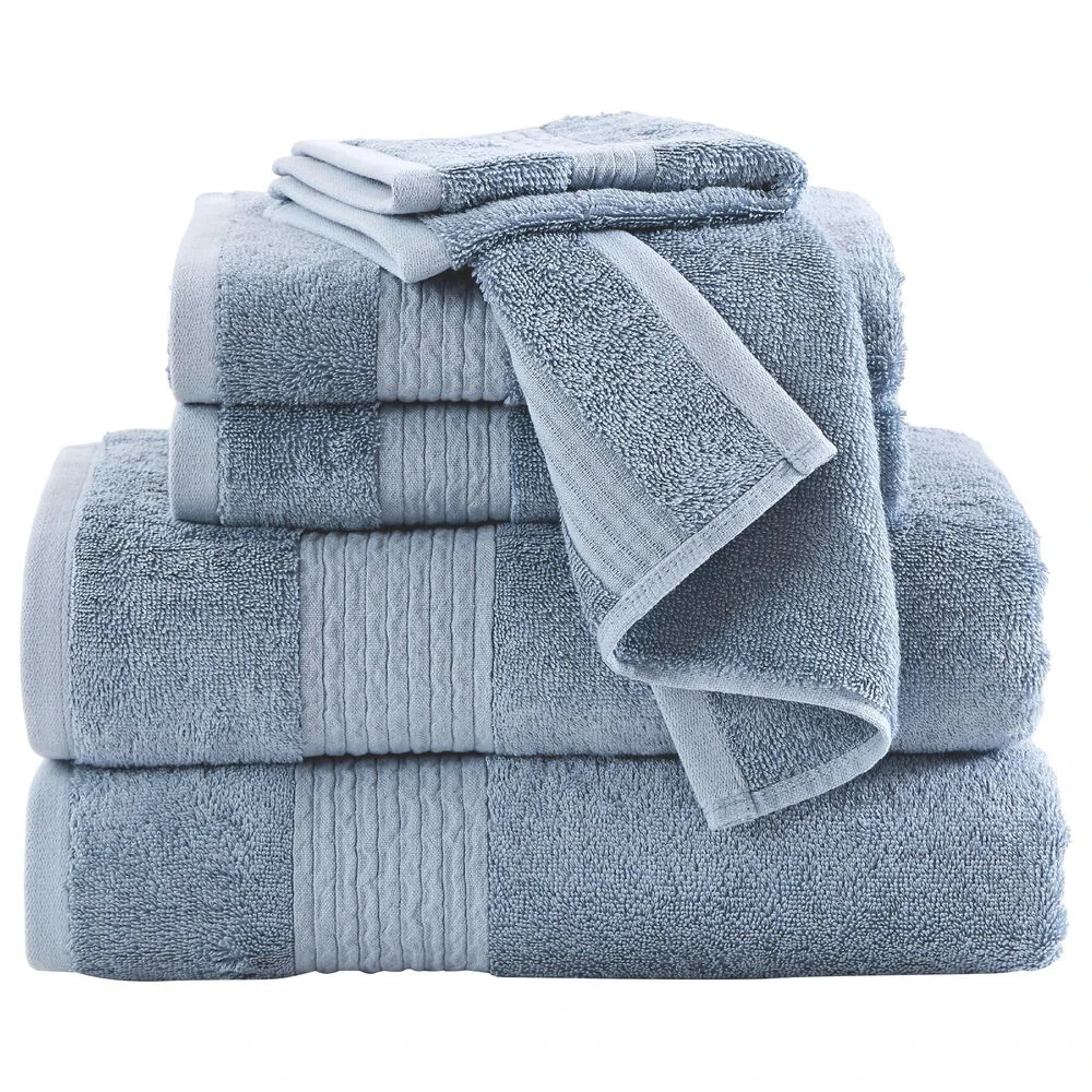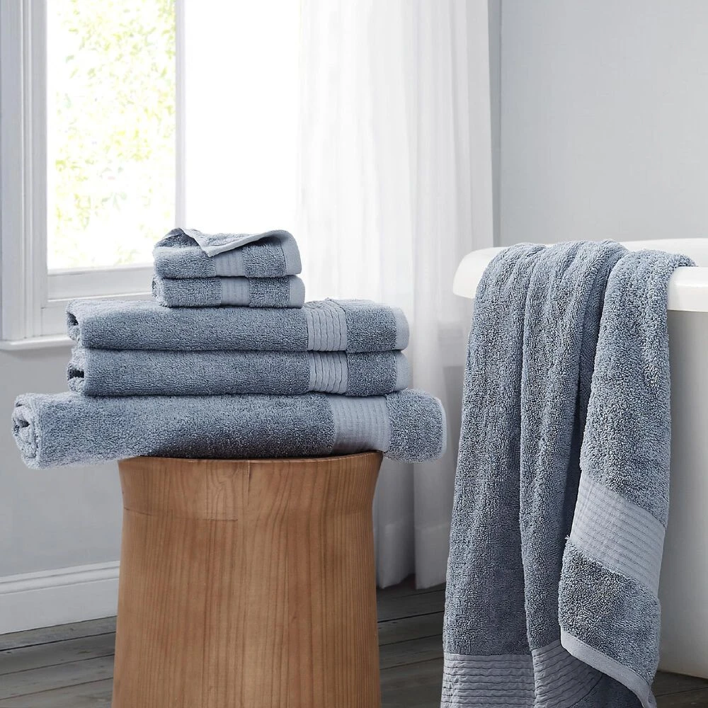 The Brooklyn Loom Cotton TENCEL Towel Set presents the perfect balance between softness and durability. The unique properties of TENCEL Lyocell fibers allow for a long lasting towel that is absorbent and quick drying, with all the benefits of soft and smooth cotton. From sourcing to production, TENCEL is made with sustainability in mind by using environmentally responsible practices. This six piece set features two wash cloths (12W x 12L), two hand towels (16W x 28L), and two bath towels (30W x 54L) with a dobby style border.