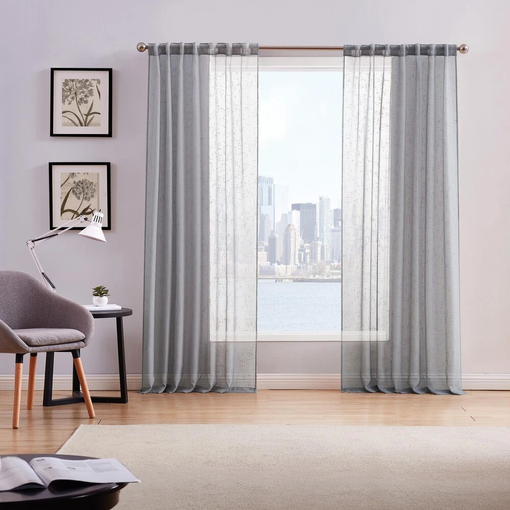 These solid color drapes come in a wide range of colors to match a variety of rooms. These sheers use a slub yarn in a vertical stripe pattern. These drapes are also perfect if you want to change the look with rod pocket or back tabs for a cleaner look. Includes: two window panels 50×84 inches with 3 inch rod pocket and back tabs. Face and back is 100% polyester with textured fabrics. This item is machine washable, but please be sure to use appropriate sized machinery to avoid any excess wear on the items. This item is machine washable, but please be sure to use appropriate sized machinery to avoid any excess wear on the items. This item is imported from China.