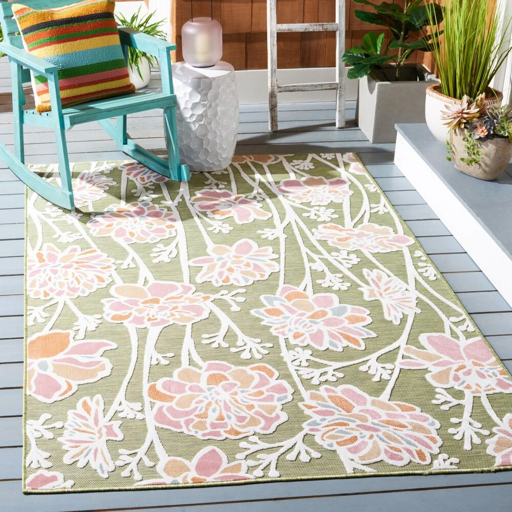 Safavieh Cabana CBN486Y 4′ X 6′ Green And Pink Indoor/Outdoor Area Performance Rug