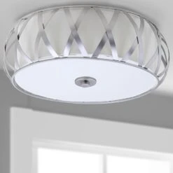 Consider it the height of fashion. The Charing Cross ceiling light reflects a stylish transitional look in any room or hallway. Crafted of steel with a chrome finish, its beautiful X motif encircles a white cotton drum shade.