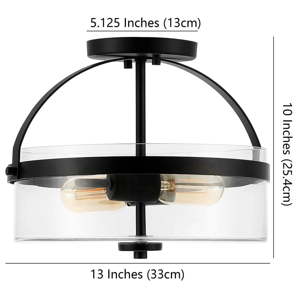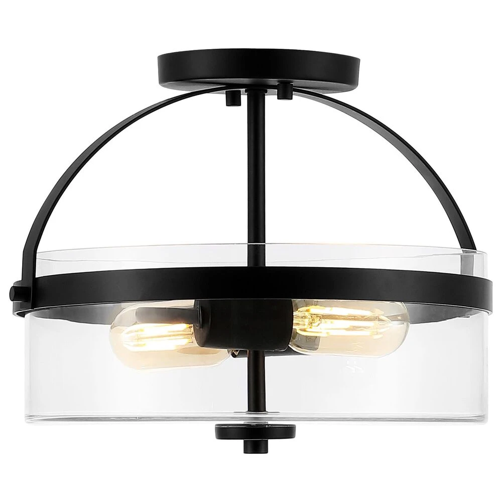 Ideal for both industrial and farmhouse decor, this Erlan Flush is a bold finishing touch. Erlans black finish and clear glass shade highlight the decoratively exposed bulbs and hardware, making it a must have in an urban style kitchen.