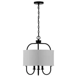 This Kenris Pendant beautifully revitalizes antique elegance for todays classic-contemporary decor. An off-white fabric shade pairs beautifully with Kenriss black finish, casting a warm glow in any room.