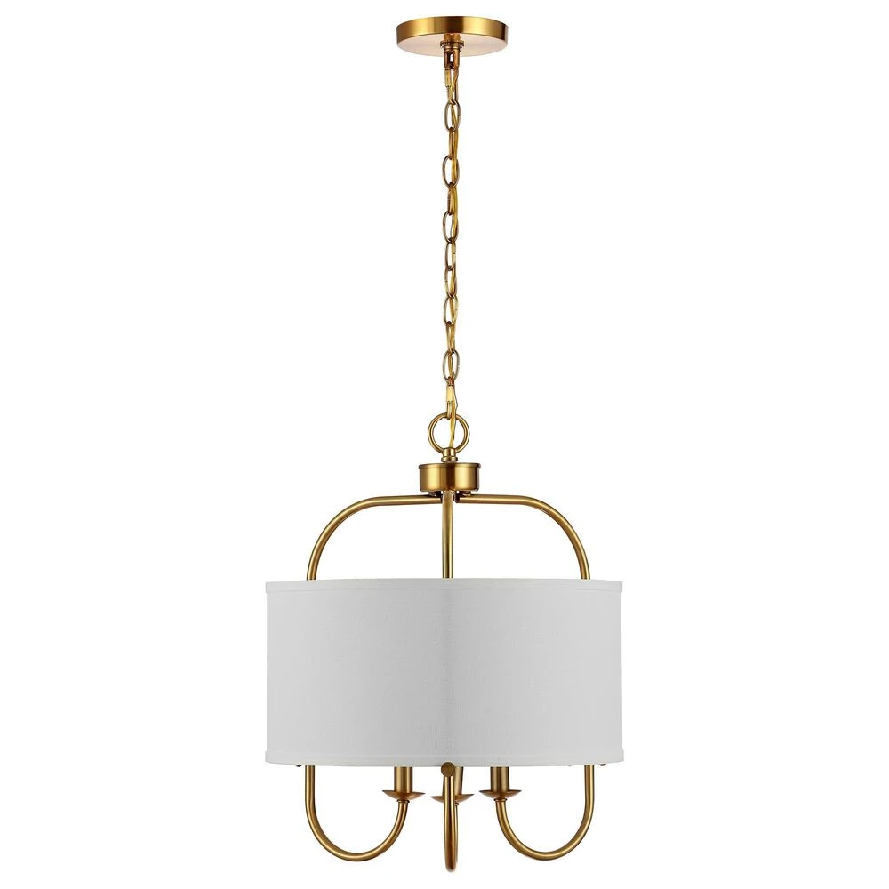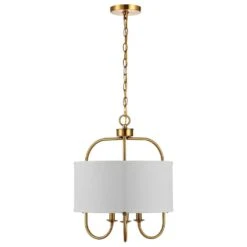 This Kenris Pendant beautifully revitalizes antique elegance for todays classic-contemporary decor. An off-white fabric shade pairs beautifully with Kenriss rich brass gold finish, casting a warm glow in any room.