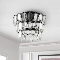 Unapologetically glamorous, this Norla Flush Mount embraces the decadence of Art Deco for todays high style interiors. Three tiers of diamond shaped crystals cascade over an oil rubbed bronze frame, creating a gala worthy sparkle in any room.