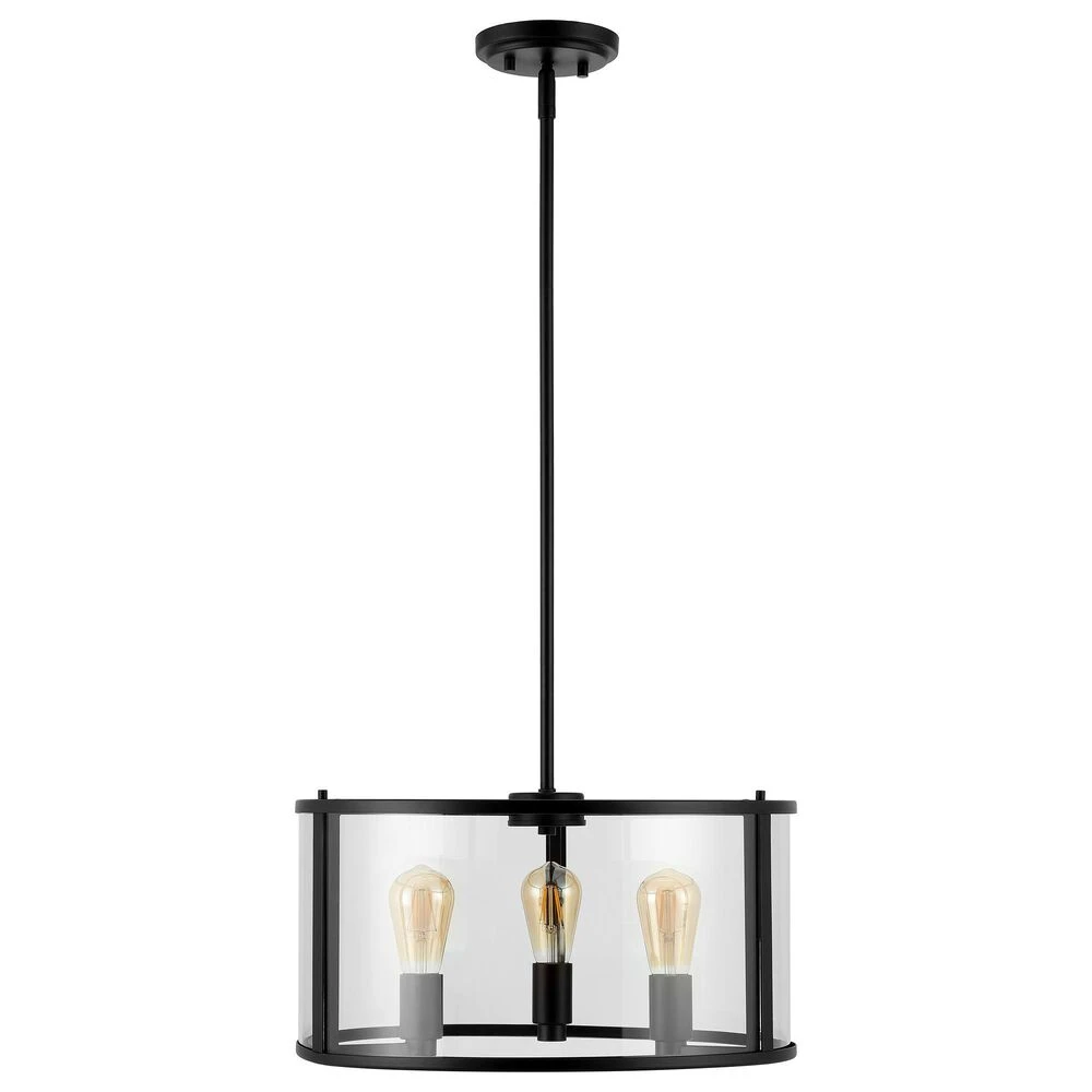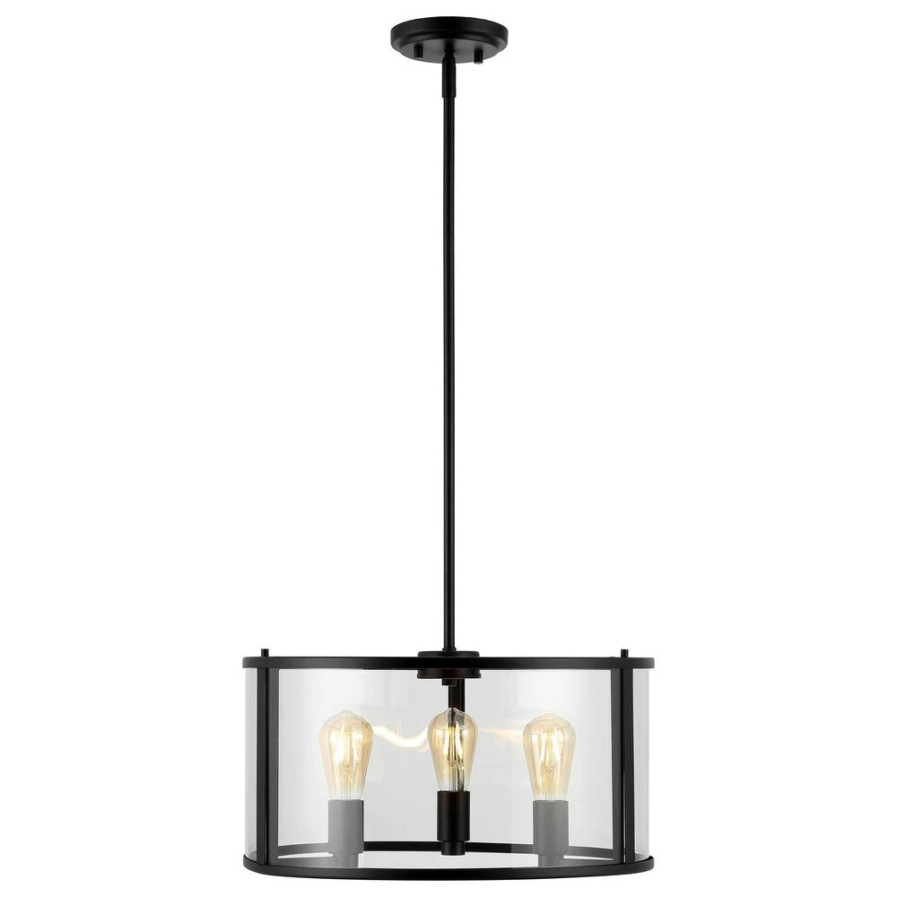 This Prener Pendant is beautifully sophisticated in its minimalist style. An oil-rubbed bronze finish decadently frames Prener’s clear glass shade, and three slim bulbs cast an elegant glow in any decor.