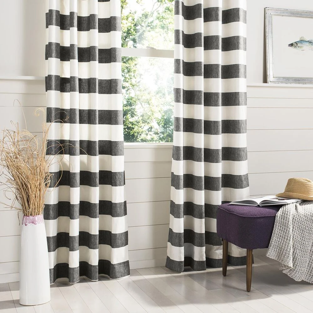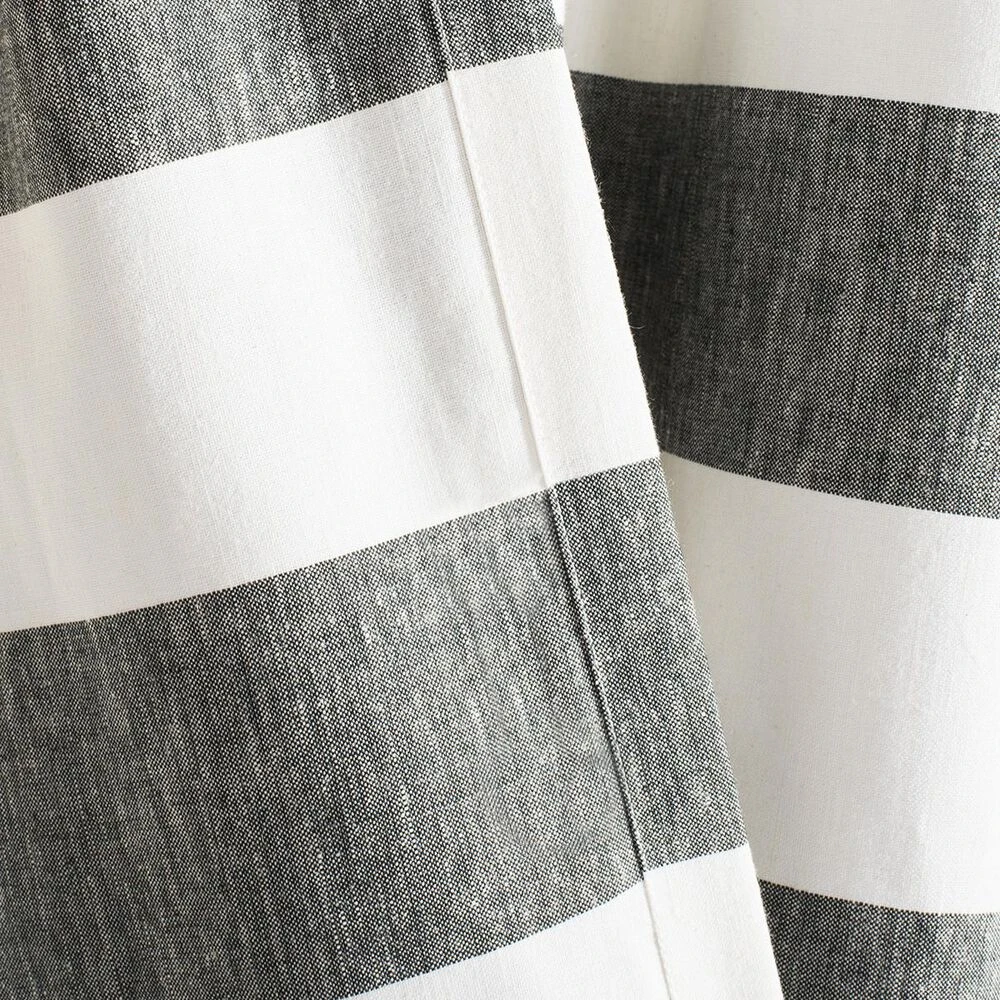 Casual, comfortable, and unmistakably mod, the Rafina Window panel brings remarkable striped styling to todays trendy home decor. The semi-sheer fabric of Rafina is made using a blend of linen and cotton, with bold horizontal stripes, colored in weathered grey and white. Its flowing design and organic energy works especially well in larger, open living spaces. Polished metal grommets make for easy installation and a smart finishing element.