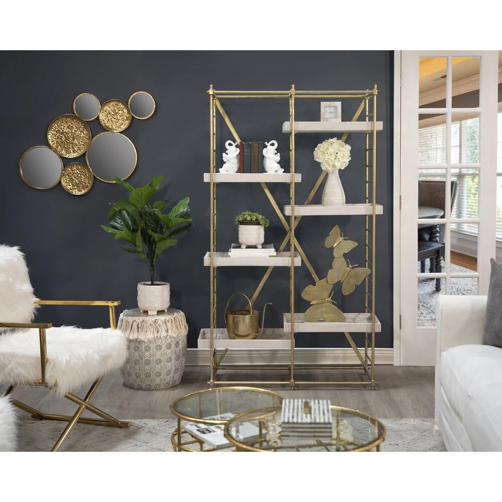 Decorative wall mirrors will attract instant attention from anyone walking into the room. This contemporary piece offers a geometric circle pattern, some filled in with a mirror others filled in glitter. Attached keyhole for hassle free hanging. Crafted from gold iron.Sagebrook Home has been formed from a love of design, a commitment to service and a dedication to quality. They create and import fashion forward items in the most popular design styles. Backed with years of experience in the textile field, They are now providing a complete Home decor story. the combination of wall decor, furniture, lighting and Home accessories are all coordinated with textiles to provide a complete Home look. Sagebrook Home is committed to providing the best Home decor and accent pieces at value prices.