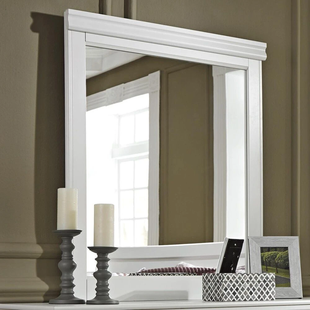 The Anarasia mirror set’s crisp cottage white gives traditional Louis Philippe profiling a delightful style awakening. The look is timeless. The feel right at home.