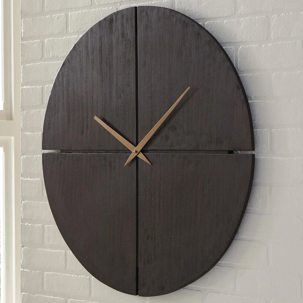 Elegantly dressed in black with gold tone accents, this clock takes contemporary decor to new heights. With small cutouts denoting the cardinal positions, this analog clock makes timekeeping simple.