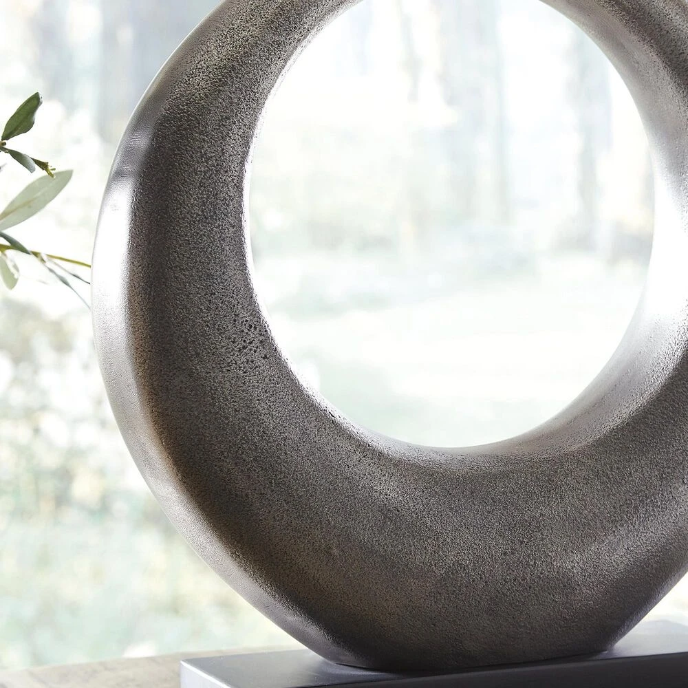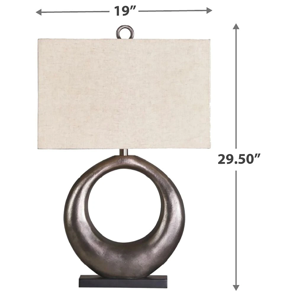 Part sculpture and totally beautiful, the Saria table lamp lets you delight in the art of lighting. The aesthetic may be contemporary and refined, but its antique silvertone cast aluminum infuses a raw element for beautiful balance.