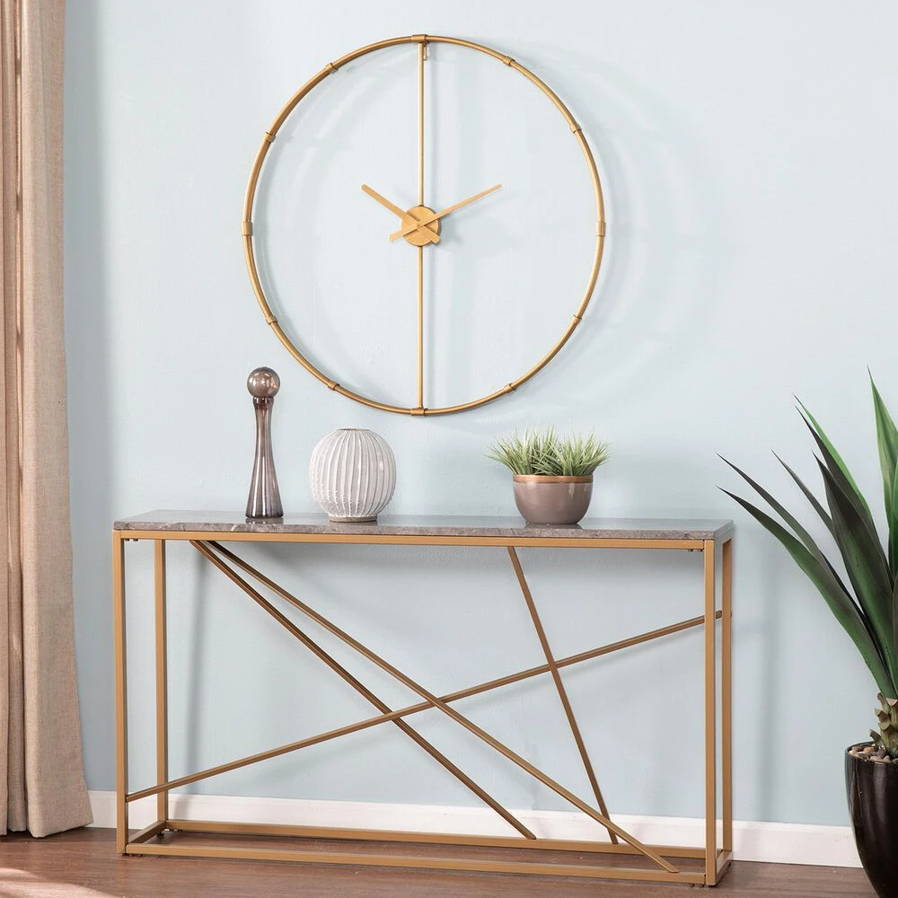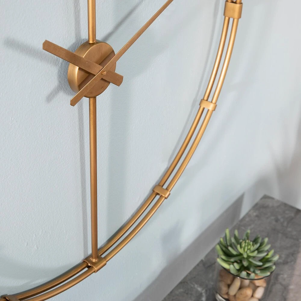 Embrace contemporary simplicity with this decorative wall clock. With an open clock face and gold finish, this functional decor pairs with any home office, entryway, or living room. The thin, metal frame and number-free notches bring unmatched minimalist style to your space without skimping on everyday functionality.