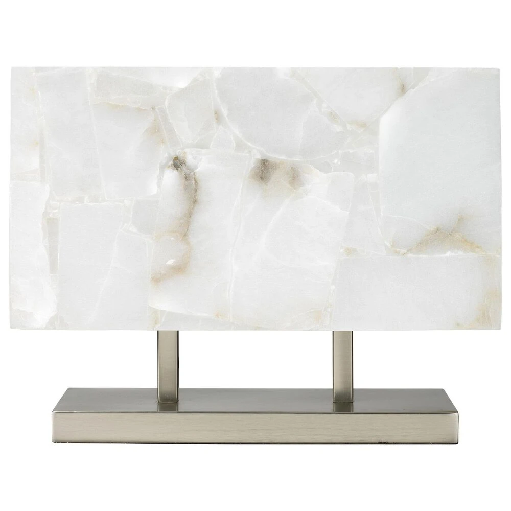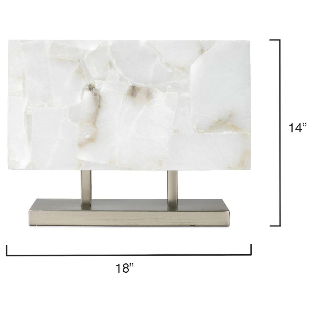 Named “Ghost” after the perfect way the pearly alabaster shade seems to float above its antiqued metal base. Emitting a soft glow that showcases the unique veining inherent in alabaster. The hand-carved stone will cast the perfect glow over any room.