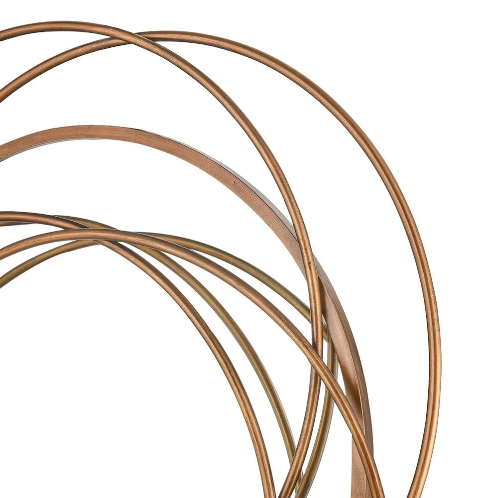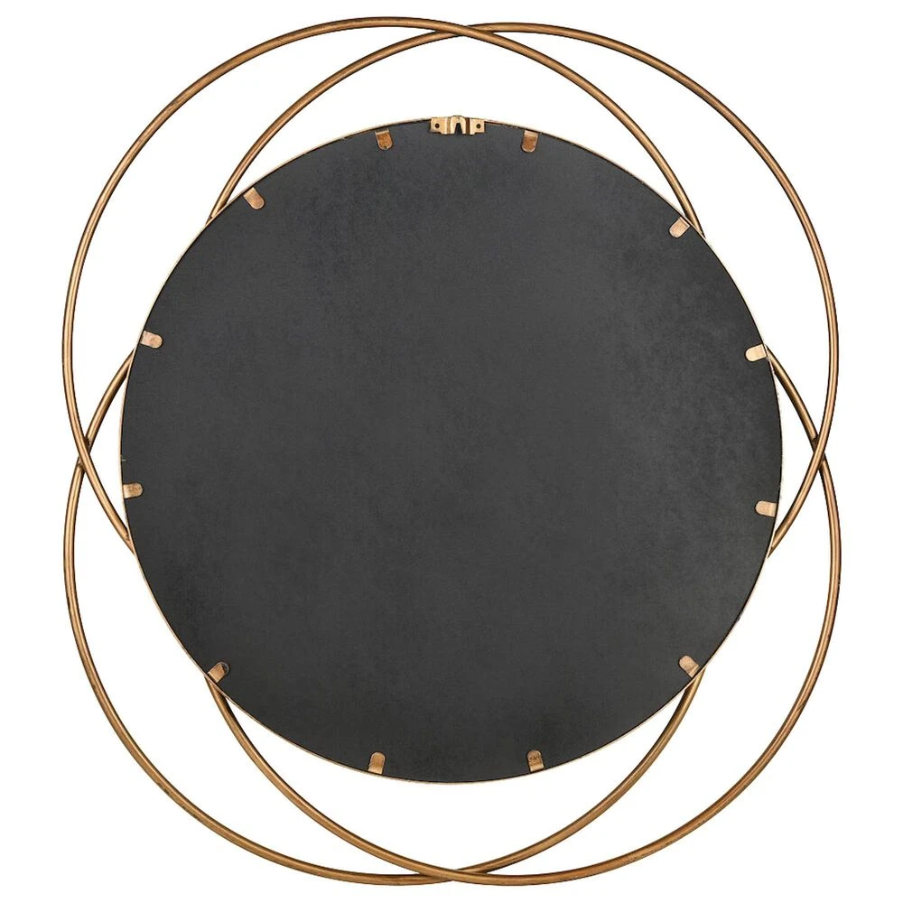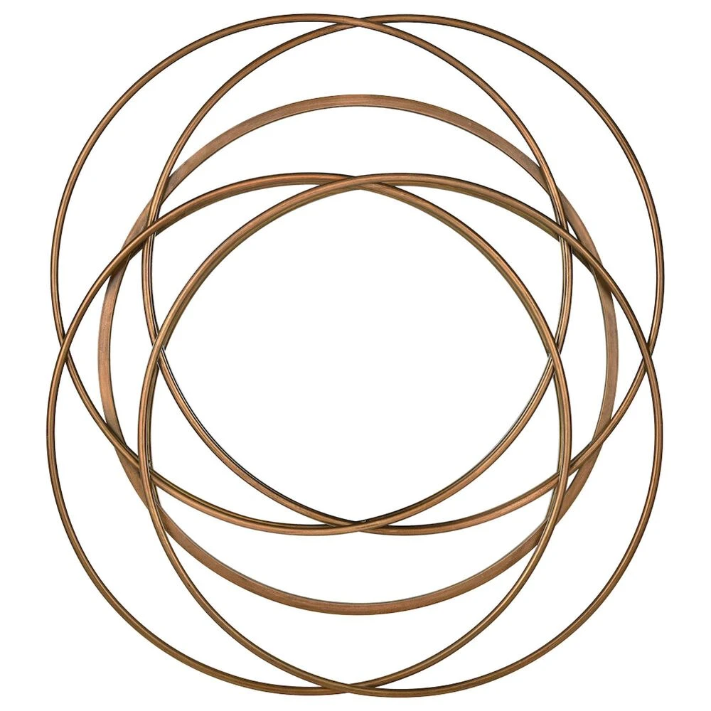 The Jeno wall mirror features a central circular mirror framed with abstract brass rings layered loosely to create the frame. The look is sculptural and contemporary.