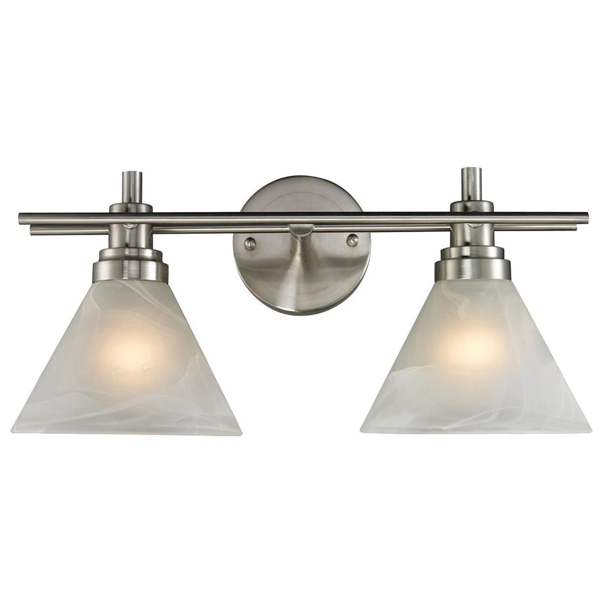 The Pemberton collection features Brushed Nickel hardware matched with marbleized white glass.