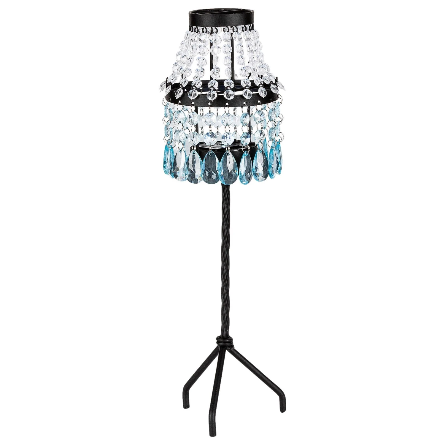 This adorable standing tabletop chandelier is a must have for any outdoor living space. Designed with class and elegance in mind, this piece is not only beautiful, but also a functioning solar-powered light source. Measuring 17.32-inches tall with a metal frame stand, this piece is destined to be the talk of your next gathering!