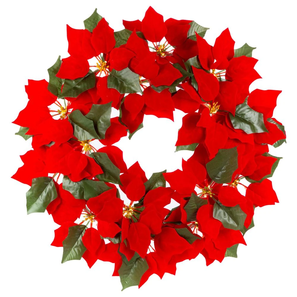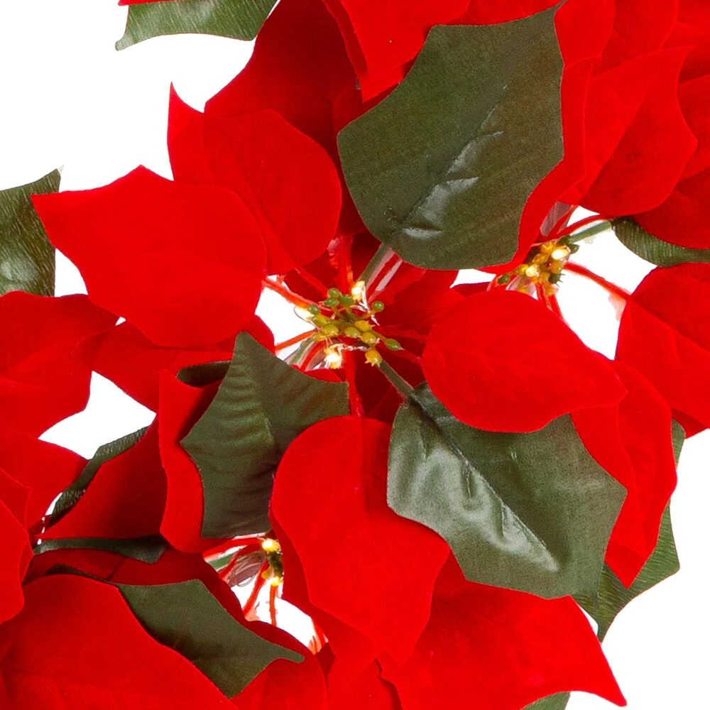 - Battery operated lighted poinsettia wreath with 45 LED Lights