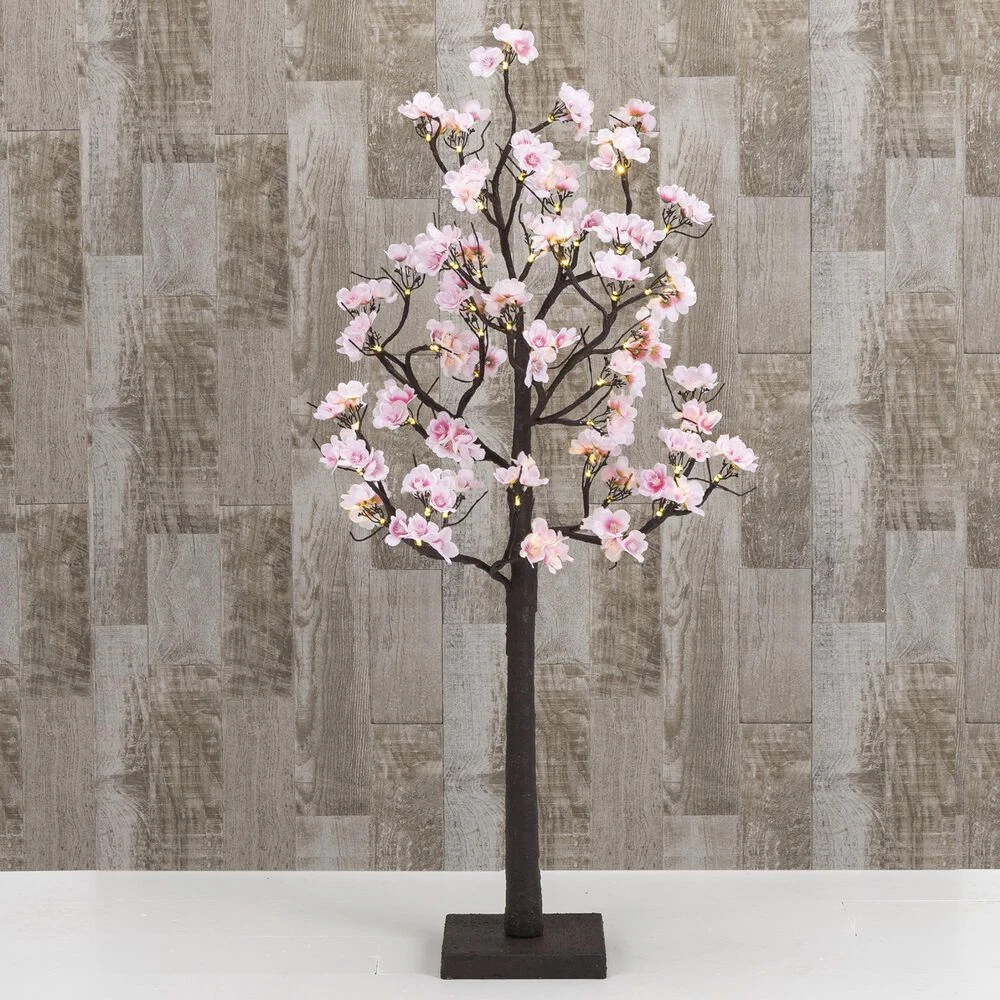 Enjoy the soft beauty of this 4-ft pink peach flower tree. It will look great anywhere in your home or patio. With a dark brown trunk and base to support it, there are 48 warm white LED lights nicely dispersed throughout the tree to give it a soft glow. Requires 3AA batteries, for the indoor battery box. With 6 ON /18 OFF timer function. Batteries are not included.