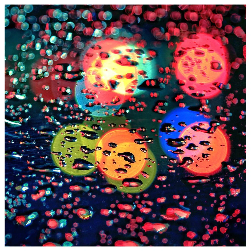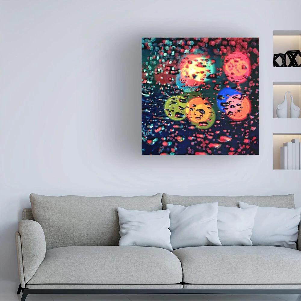 This ready to hang, gallery-wrapped art piece features colorful abstract color through a window.