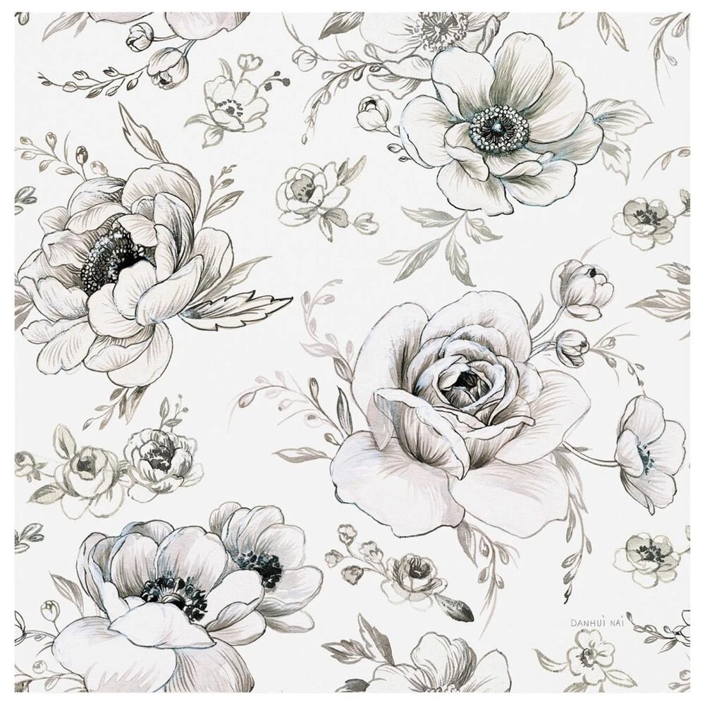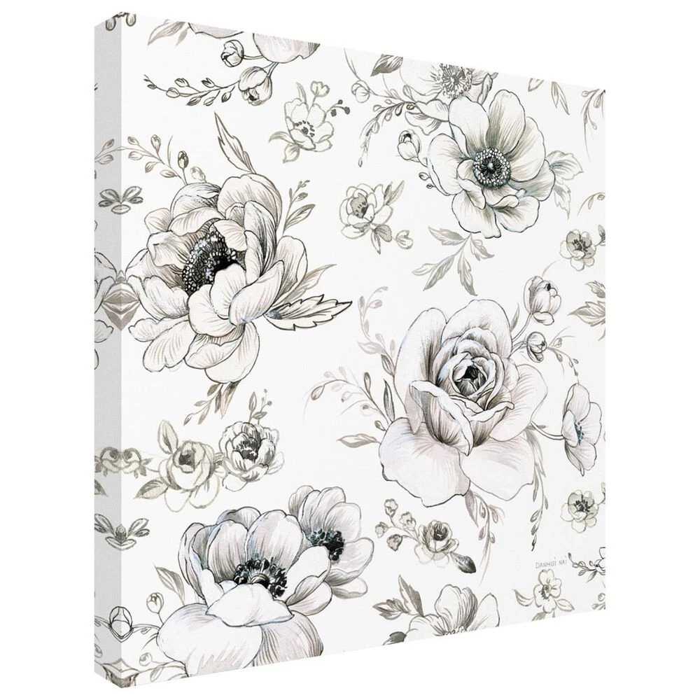- This ready to hang, gallery-wrapped art piece features a collage of peonies in black and white.