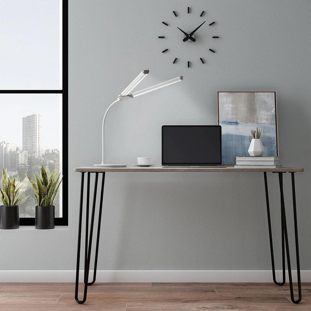 Bring stylish innovative lighting to your home, office or workspace with the Lavish Home Dual Light LED Gooseneck Desk Lamp. This ETL-listed lamp has two energy saving light bars with high quality built-in LED beads and diffusing film for focused light control without glare or flicker, each with their own switch so they can be used together or angled up to 180 degrees apart for optimal coverage. Best for reading, computer work, craft projects or use as a piano lamp, this eye friendly task lamp has an excellent color rending index (CRI) of 95 producing light that matches natural sun light with up to 5000k color temperature, and a 4-level touch dimmer for efficient brightness control. The goose neck arm provides flexible height adjustment and unlimited angle choices, making it easy to focus the light exactly where you need it. This portable lamp also features a sturdy flat 7.5″ diameter base to hold memo pads on an office desk, pencil cups next to a drafting table or nightstand in your bedroom. The modern minimalist-inspired task lamp has a stylish, smart, and practical design and is perfect for the home, office, or a college dorm room!