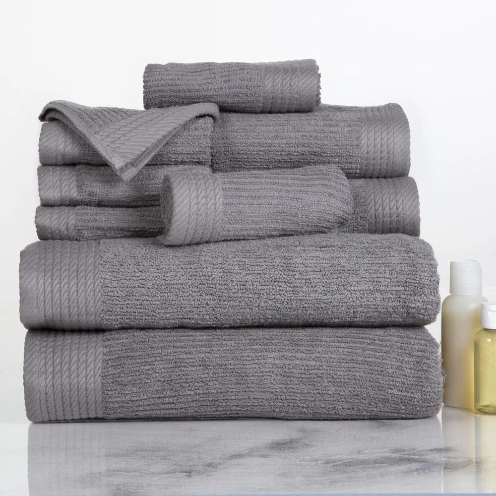 Pure 100% cotton terry is woven into a plush ribbed bath towel for a luxurious, spa-worthy towel that has exceptional ribbed pile that is subtly soft, yet invigorating against the skin. This 10 piece Ribbed Towel set will add contemporary style to any bathroom decor with its elegant design. Fingertip towels are included to enhance your powder room decor.
