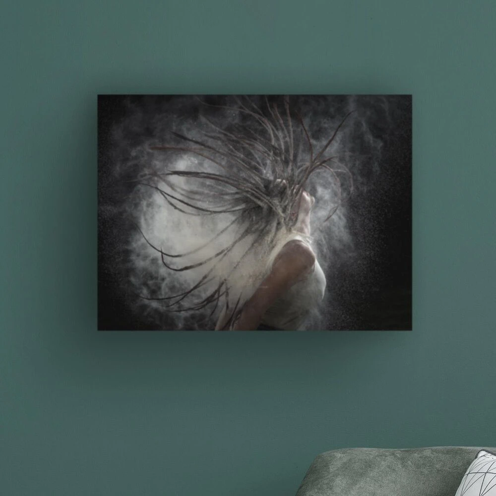 This ready to hang, gallery-wrapped art piece features a woman dancing in an abstract composition.