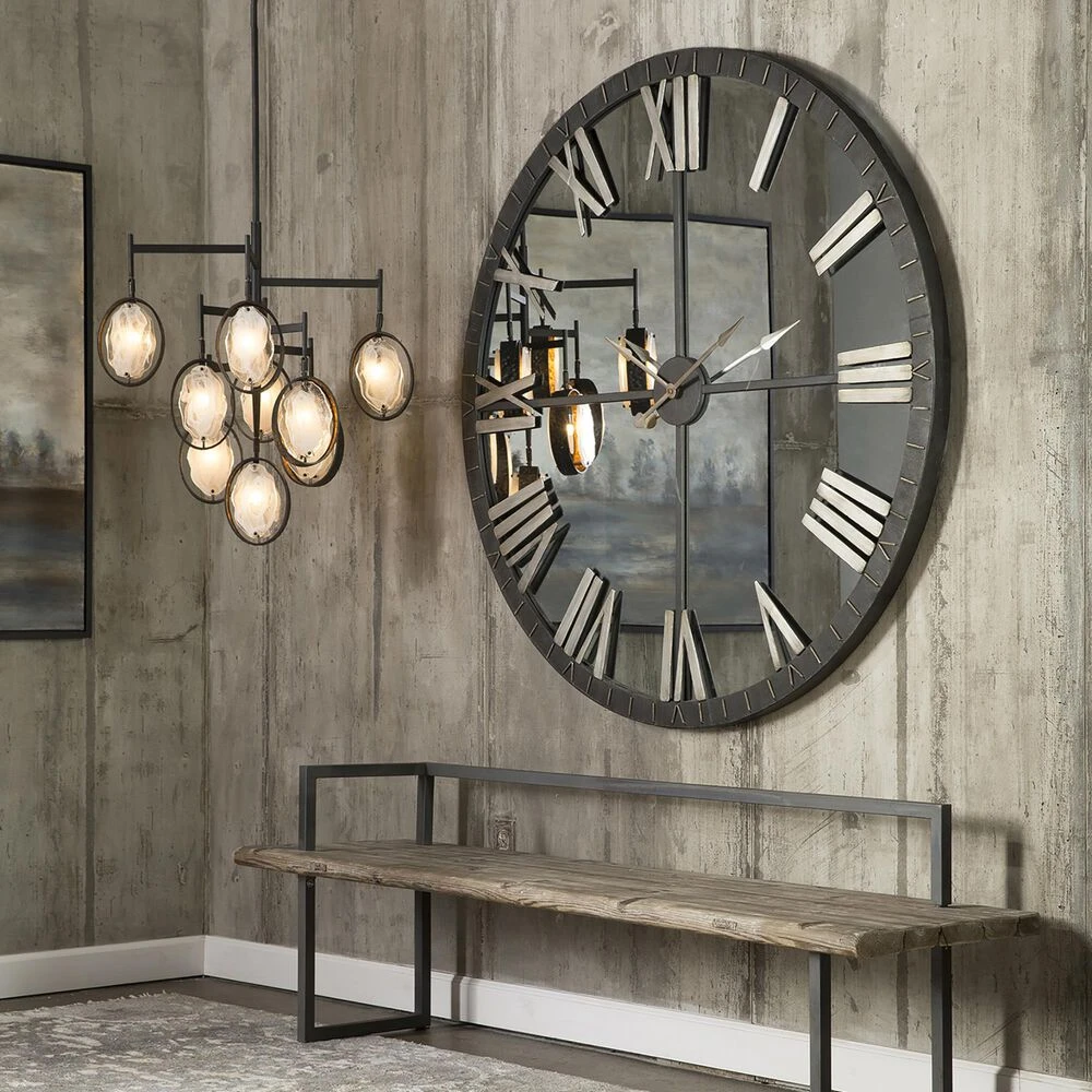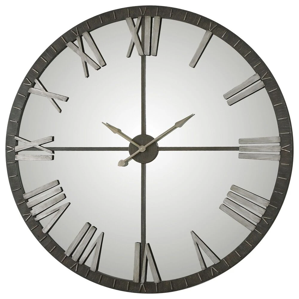 Oversided Wall Clock Featuring A Distressed, Rustic Bronze Metal With Silver Highlights And Mirrored Face. Quartz Movement Ensures Accurate Timekeeping. Requires One “AA” Battery.