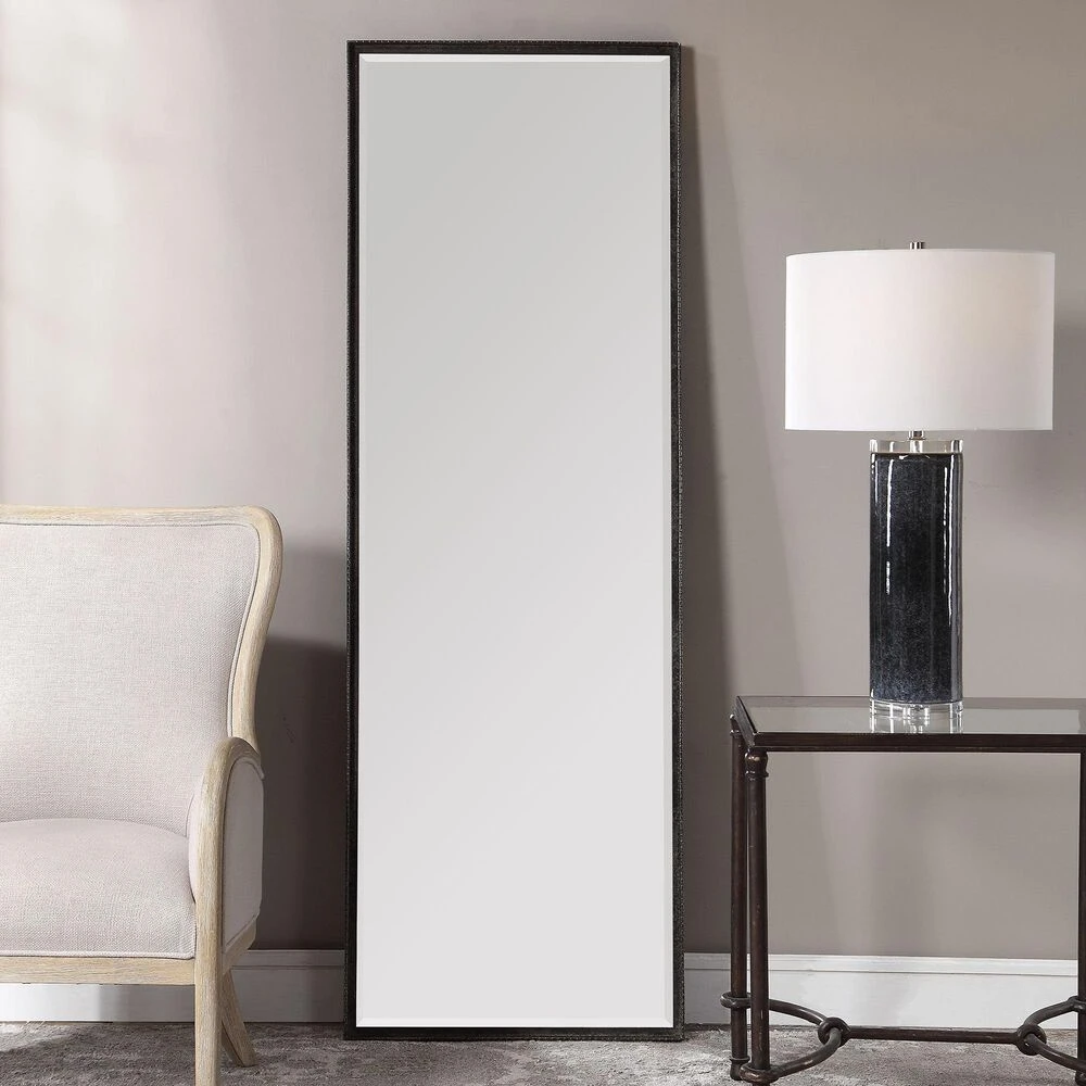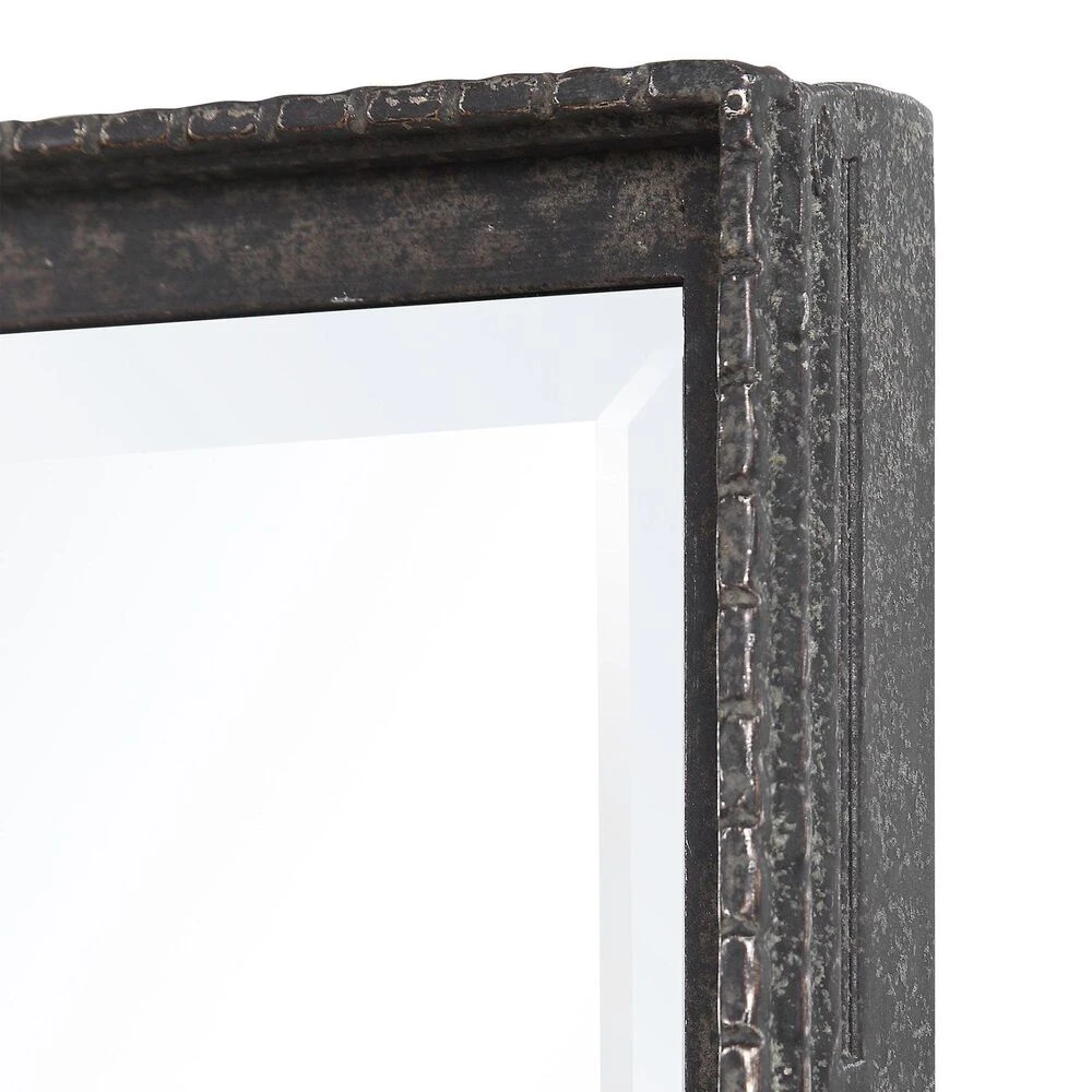 This Simple Mirror Features An Iron Construction With Detailed Edges. The Slight Profile Frame Is Finished In A Distressed Rustic Bronze With Aged Gold Highlights.