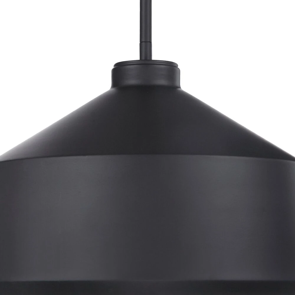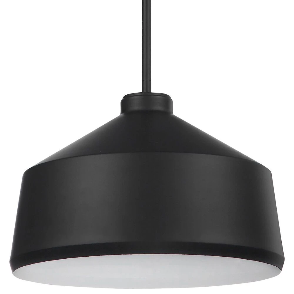 Clean Line Metal Shade 1 Lt. Pendant Featuring A Deep Matte Black Finish With A White Interior. With 1-60 Watt Max Edison Socket And Includes 15’wire, And 3-12″ Stems & 1-6″ Stem For Adjustable Installation.