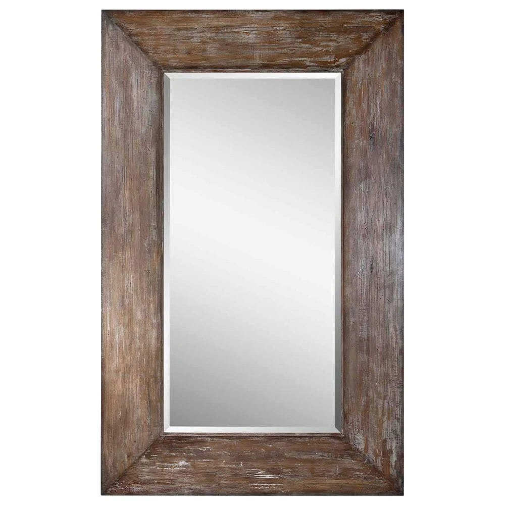 Generous 10″ Wide Frame With Antiqued Hickory Undertones, Light Gray Wash And Burnished Distressing. Mirror Has A Generous 1 1/4″ Bevel. May Be Hung Either Horizontal Or Vertical.