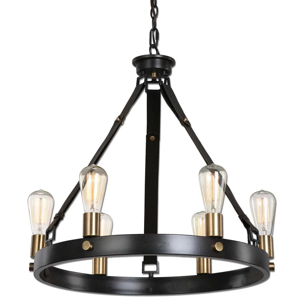 Combination Of Dark Antique Bronze & Weathered Bronze With Leather Straps. Includes Antique Style 6-60 Watt BT58 Bulbs.