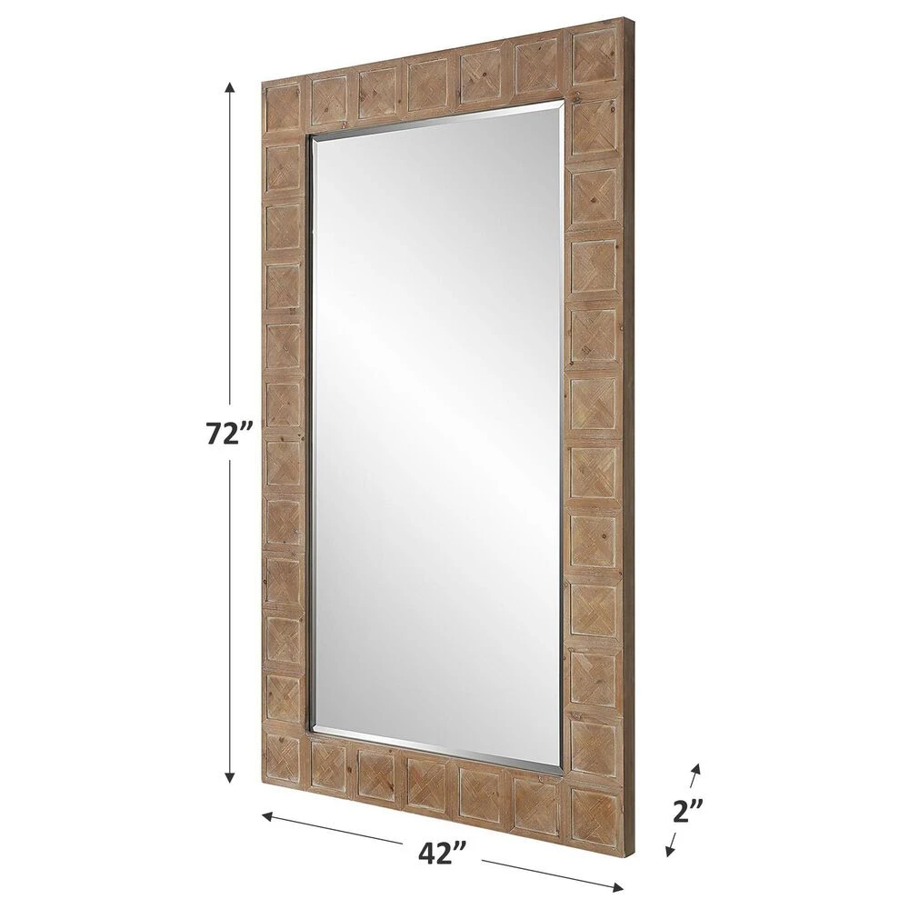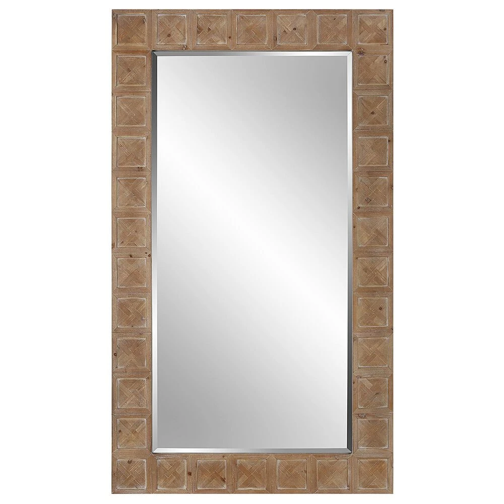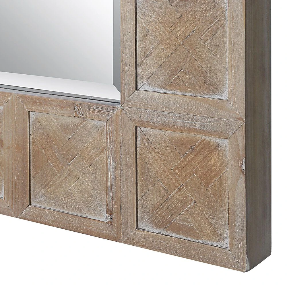 Lending Itself To Rustic Lodge And Farmhouse Styles, This Rectangular Mirror Is Crafted From Solid Fir Wood With Crossed Inlay Details Around The Frame And A Light White Wash That Accentuates The Natural Wood Grain. Mirror Has A 1 1/4″ Bevel And May Be Hung Horizontal Or Vertical. Due To The Nature Of Natural Materials, Each Piece May Have Slight Variations.