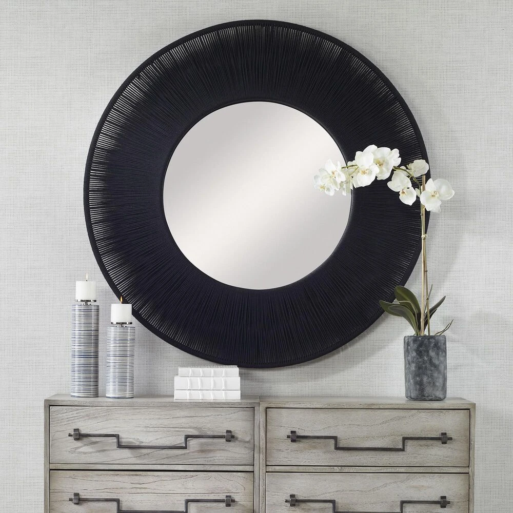 With Combined Natural Texture And Materials, This Round Mirror Pays Homage To Its Coastal Inspiration. Dyed Black Rope Is Stretched Over A Solid Iron Frame To Create A Casual And Versatile Design.