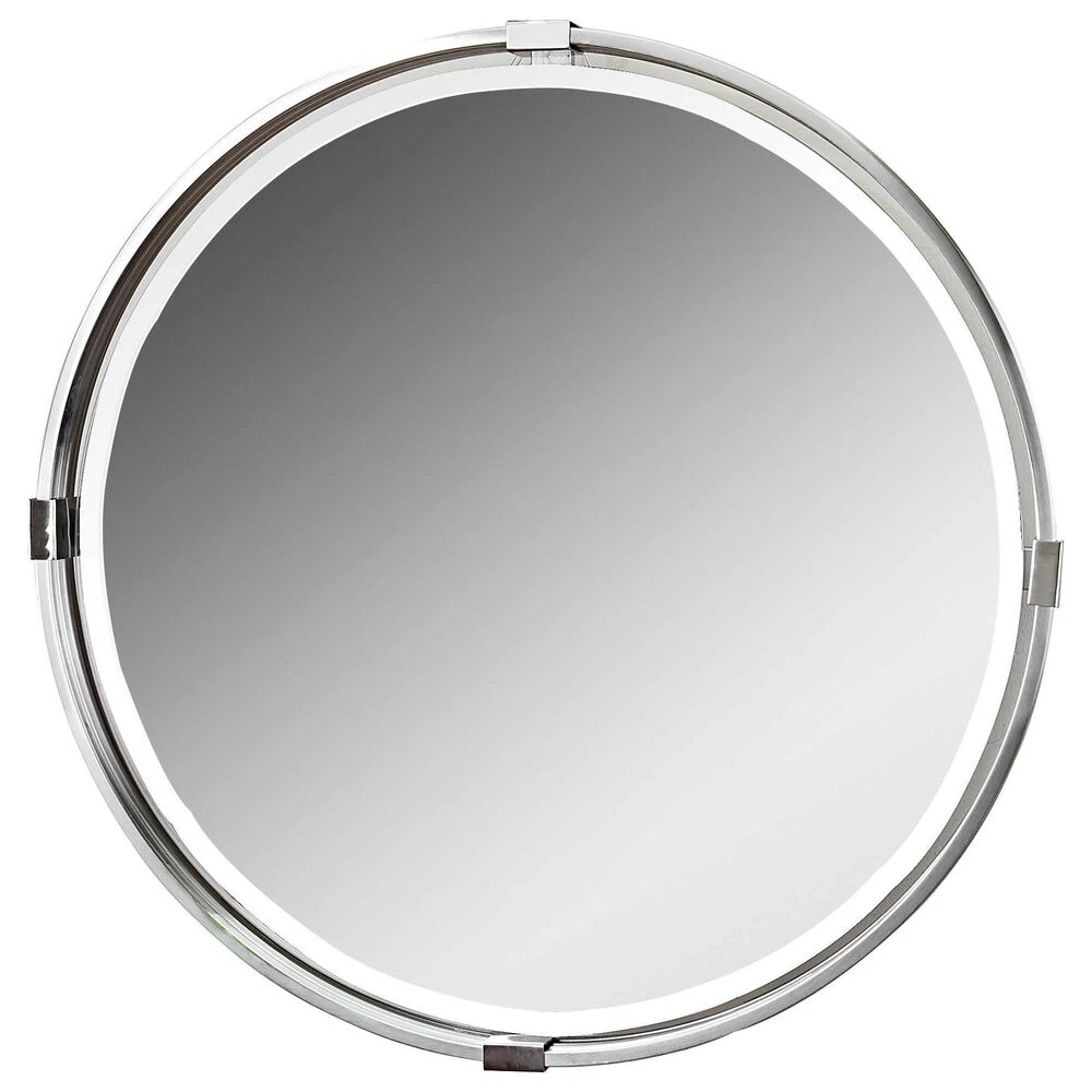 Refined Metal Frame Finished In A Plated Polished Nickel Surrounding A Floating Mirror With A Generous 1 1/4″ Bevel.