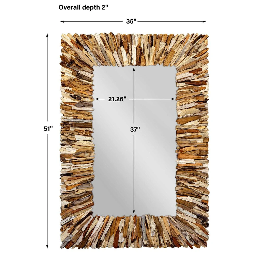 This Rectangular Mirror Is Artfully Crafted From Natural Teak Branches, Pieced Together To Create A Beautifully Sculpted Look. Due To The Nature Of Natural Materials, Each Piece May Have Slight Variations.