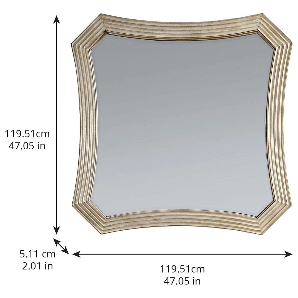 - Convex frame design features extra-wide moldings with raised fluting detail